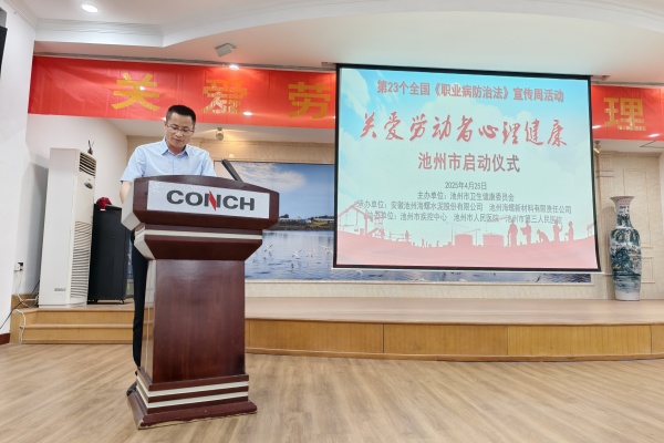 今年4月25日至5月1日是第23個全國《職業(yè)病防治法》宣傳周,本次活動的主題是“關(guān)愛勞動者心理健康”。為全面貫徹黨中央、國務(wù)院關(guān)于加強職業(yè)病防治工作的決策部署,持續(xù)推進(jìn)職業(yè)病防治工作,切實保障廣大勞動者職業(yè)健康權(quán)益,2025年4月25日上午9:00,池州市《職業(yè)病防治法》宣傳周活動啟動儀式在池州海螺會議室舉行。