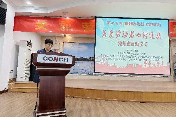 無論是關(guān)注勞動者職業(yè)健康,還是關(guān)愛勞動者心理健康,衛(wèi)健部門一直承擔(dān)著頂層設(shè)計、行業(yè)監(jiān)管責(zé)任,一直是廣大職工群眾的堅強后盾。接著,池州市衛(wèi)生健康委黨組成員、系統(tǒng)工會主任、三級調(diào)研員陳鳳英女士為本次活動致辭,并宣布宣傳周活動正式啟動。她倡議:讓我們以宣傳周為契機,共同關(guān)愛勞動者心理健康,共同營造健康、和諧的工作環(huán)境,用實際行動守護(hù)每一位勞動者的健康與幸福。既要自身踐行,也離不開全社會共同參與,尤其是離不開企業(yè)的責(zé)任落實。各單位要高度重視,精心策劃,積極發(fā)動,提高宣傳效果。