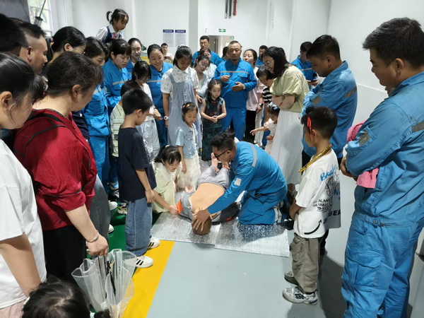 沉浸式體驗爸爸的工作日常,走進爸爸的“第二個家”。家屬們在工廠講解員的帶領下,先后參觀了企業(yè)工廠廠史館、中控操作室以及安全實訓基地。在廠史館,10歲的果果眼里寫滿新奇,“這是什么,那什么”問個不停,當她發(fā)現(xiàn)工廠成長照片墻上爸爸的身影時,興奮著指給旁邊的媽媽看;在心肺復蘇假人模擬操作環(huán)節(jié),8歲的小小男子漢大樹在爸爸的手把手教學下,一邊數(shù)著“1、2、3……”一邊認真地給假人模型做按壓式心肺復蘇。這種沉浸式體驗不僅讓孩子們觸摸到父親工作的溫度,還有對“爸爸為什么晚歸”的全新理解,更在稚嫩的心靈播下職業(yè)啟蒙的種子。