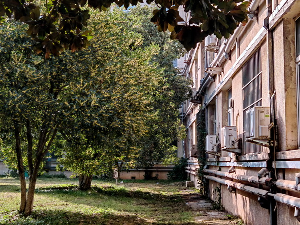 在廠文化宮前,在莊嚴(yán)的廠大門入口,尤其是在辦公樓后方,三株格外高大茂盛的桂花樹靜靜佇立。它們與工廠同齡,是1978年工廠建設(shè)之時(shí)便親手栽下的“元老”。近五十年風(fēng)雨同行,它們從稚嫩的樹苗長成如今的華蓋亭亭,猶如盡職盡責(zé)、默默奉獻(xiàn)的老員工,深深扎根于此,見證著工廠的成長與變遷,也用自己的每一次新綠、每一樹繁花,默默裝點(diǎn)著這座現(xiàn)代化工業(yè)基地的四季風(fēng)景。
