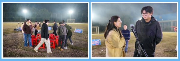 你看這邊的燒烤區(qū),雖伴著冬季傍晚的微涼,卻處處洋溢著火熱的氣息。員工們自發(fā)組成燒烤小隊(duì),分工協(xié)作、默契配合,有人熟練翻轉(zhuǎn),精心控制火候讓食材能夠達(dá)到最佳風(fēng)味;有人熱情分發(fā)調(diào)料和飲品,不時(shí)揮舞著熒光棒配合樂(lè)隊(duì)的演出節(jié)奏。平時(shí)忙于各自崗位的員工都在此刻化身為“燒烤大師”,在炊煙裊裊與歡聲笑語(yǔ)中,彼此間的距離迅速拉近,交流也變得自然而融洽。