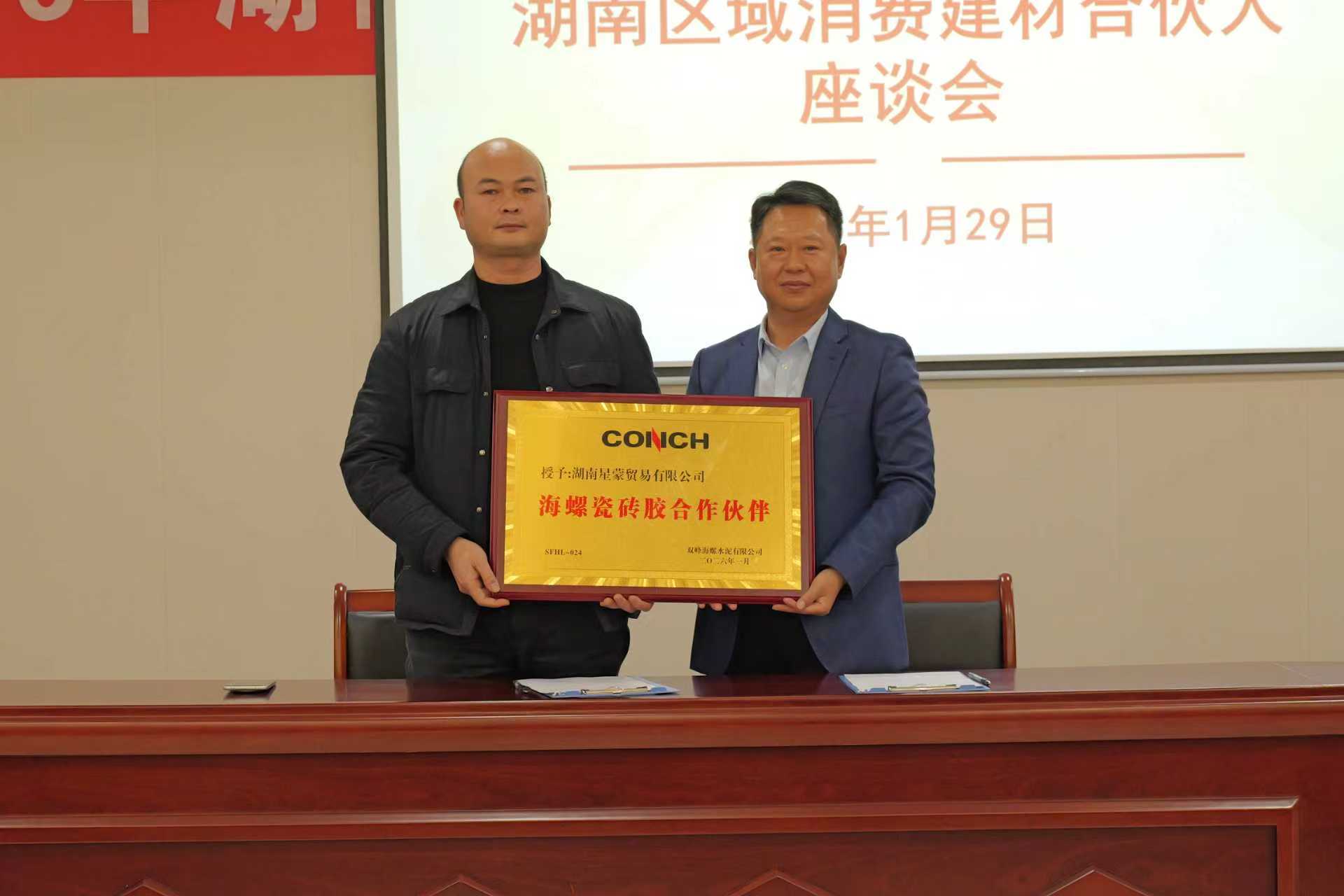 雙峰海螺總經(jīng)理王武、湖南區(qū)域銷售專業(yè)組組長(zhǎng)李超與消費(fèi)建材合伙人進(jìn)行了簽約與授牌,對(duì)2025年工作開展突出的合伙人進(jìn)行了表彰。